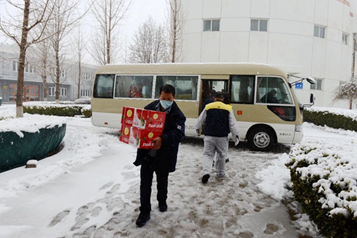 2月14日,北京普降大雪,北化集團工會、宣傳部安排三名同志,集團辦公室安排經(jīng)驗豐富的駕駛員,冒著紛飛的大雪,滿載慰問品,專程前往華騰化工園區(qū)和華騰橡塑公司進行走訪慰問,為戰(zhàn)斗在疫情防控和復工復產(chǎn)一線的干部職工送上集團黨委、工會“娘家人”貼心的關懷和溫暖。