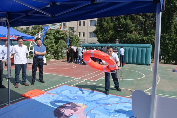 演練結束后,舉辦方在大廈籃球場開啟安全咨詢體驗活動。整個活動共設置了6個項目,分別為擁擠踩踏應急處置體驗區(qū)(充氣帳篷)、消防隱患排查試驗區(qū)、電動車電池穿刺爆燃體驗裝置、溺水自救互救教學培訓區(qū)、醉酒交通AR模擬體驗、安全標志互動區(qū)。活動現(xiàn)場氣氛熱烈,盡管天氣炎熱,但絲毫沒有減弱大家體驗掌握應急技能的熱情。