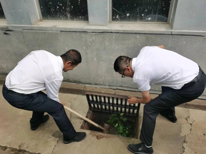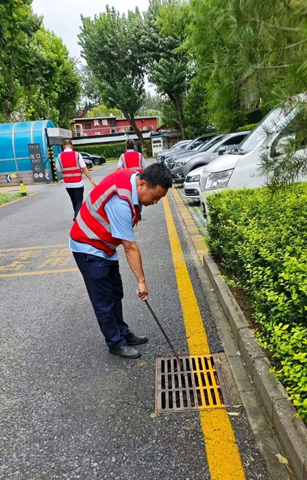 在接到暴雨紅色預(yù)警后,各事業(yè)部迅速行動,對樓宇屋面、排水管道、下水井等進(jìn)行細(xì)致檢查,及時清理雜物,同時各事業(yè)部迅速將防汛物資補充到可能發(fā)生汛情的低洼位置,以便出現(xiàn)險情第一時間救援。