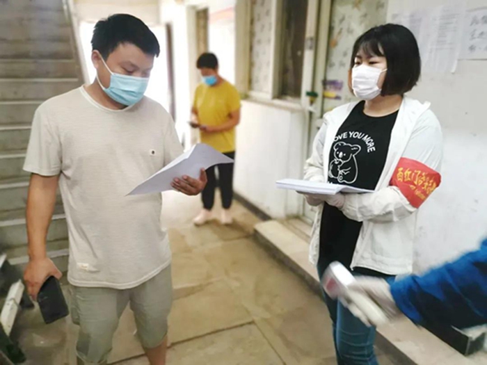 接到組織命令后,第二天即奔赴“前線”,熟悉的崗位,熟悉的社區(qū),熟悉的戰(zhàn)斗伙伴,讓我們?cè)诨貧w后倍感親切!有一些通過上次下沉認(rèn)識(shí)的居民見到我們下沉干部重新下沉很是關(guān)心,叮囑我們要做好防護(hù)工作,注意防暑,同時(shí)非常配合我們的入戶摸排工作。這讓再次“下沉”的我們又多了一份“干勁兒”。