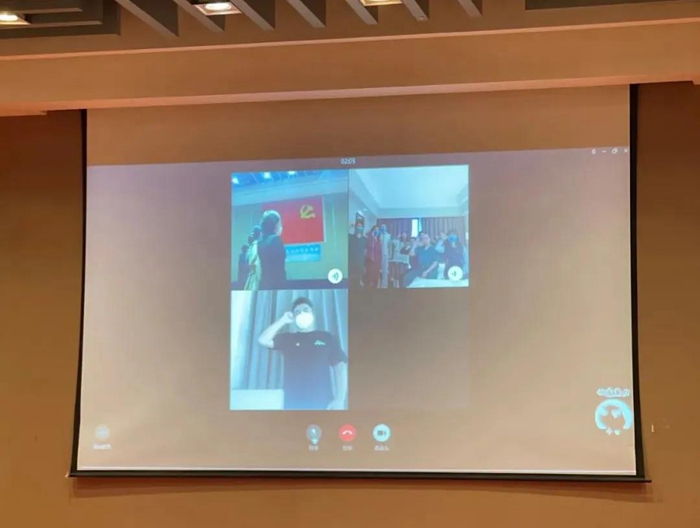 距嘉賓樓不遠(yuǎn)的另一座樓內(nèi),一部分同樣表情肅穆、胸戴黨徽、身穿防護(hù)服的同志們同一時(shí)間舉起右手,莊嚴(yán)宣誓。
