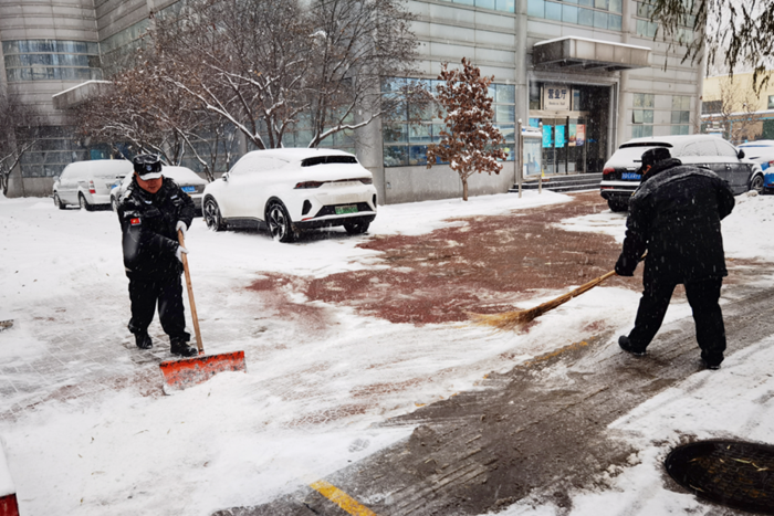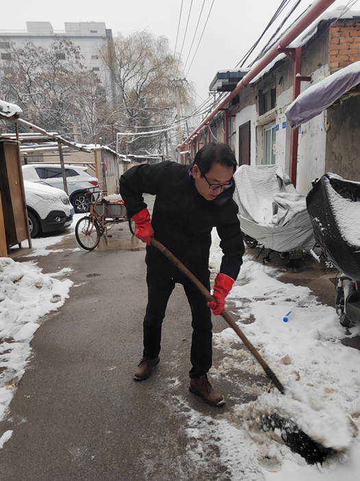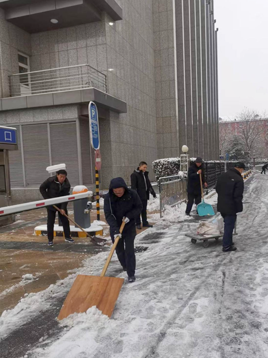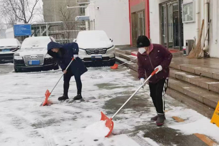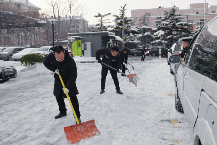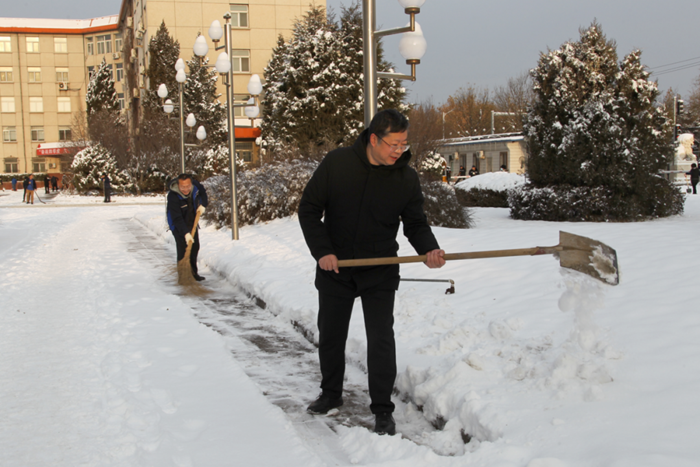 剛到單位的干部職工,紛紛拿起掃帚、鐵鍬,加入到掃雪除冰大“會戰(zhàn)”的隊伍中。大家齊心協(xié)力、現(xiàn)場一片熱火朝天,干凈整潔的道路很快清掃出來,保證了干部職工出行安全。