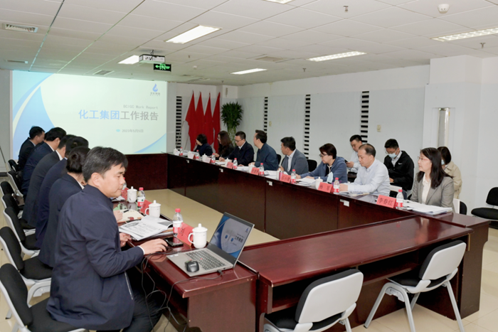 在接下來召開的調研座談會上,曾勁一行聽取了北京化工集團的工作匯報。