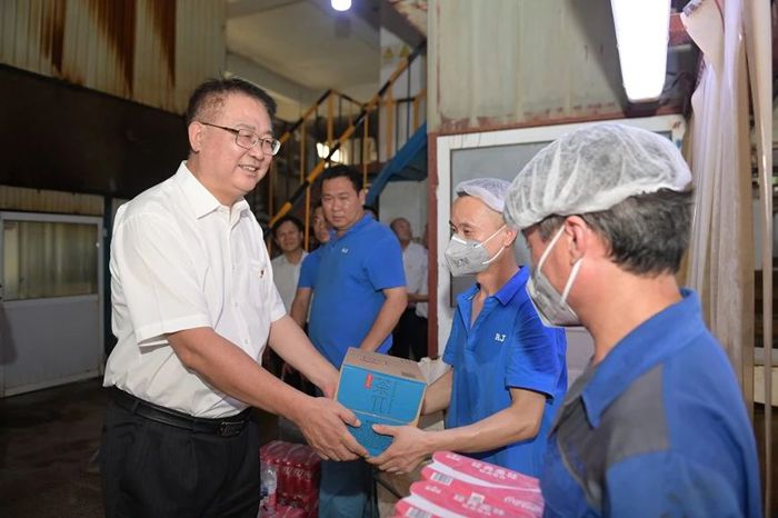 7月9日下午,北京化工集團黨委書記、董事長陳宇,黨委副書記吳瑞峰,黨委常委、副總經(jīng)理韓寶海,黨委常委、紀(jì)委書記常延輝來到華騰橡塑,進車間、到班組,親手將一份份清涼飲品送到一線職工手中。慰問過程中,陳宇詳細(xì)了解一線職工工作生活情況,對大家冒著高溫酷暑,以高度的責(zé)任感和飽滿的工作熱情堅守一線給予充分肯定。陳宇叮囑大家既要高質(zhì)量完成好本職工作,又要時刻關(guān)注身心健康,集團各級黨組織和工會組織要從各方面確保防暑降溫工作落到實處,保證干部職工健康安全。