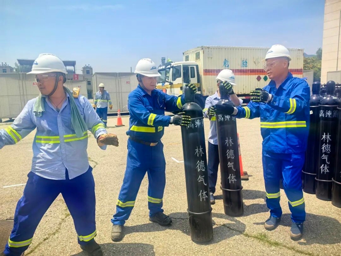 為了在規(guī)定時間完成相關(guān)任務(wù),北普公司將全部人員分成若干工作小組,組長都是由多次參加重大活動保障任務(wù)的老員工擔(dān)任,小組的主要任務(wù)是在規(guī)定時間內(nèi)將鋼瓶推放并綁定在指定位置,裝表、聯(lián)管、上槍、調(diào)壓,充氣作業(yè),巡視、加壓、換瓶,一個個規(guī)范動作都責(zé)任到小組到個人,目標只有一個,配合協(xié)作單位在規(guī)定時間內(nèi)完成罐裝,以最安全的方式、最快的速度將現(xiàn)場高純氦氣鋼瓶撤出,確保特制移動籠房能夠準時出發(fā)。