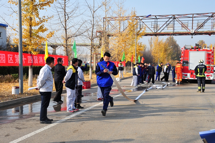 實戰演練開始前,華騰丹陛華公司經理王政圍繞開展演練的目的、相關要求作了簡要動員,提示大家要正確使用滅火器,掌握快速撲滅初期火災的能力。北化集團安全環保部傳達了“119”消防安全月和“冬防”工作的各項要求,并講解和現場演示了滅火器的正確使用方法。