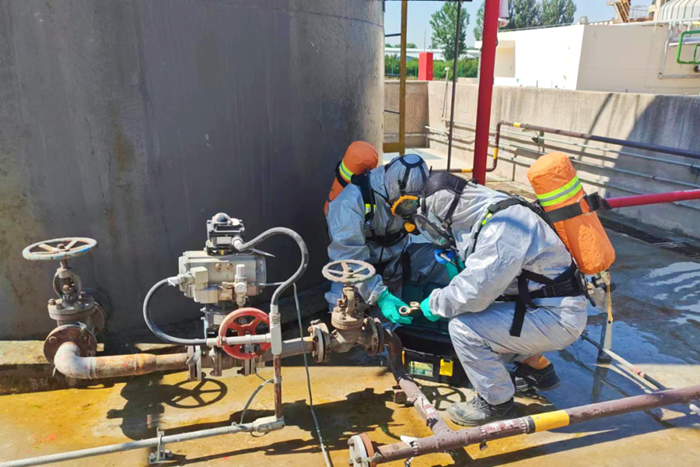 在理論知識培訓中,集團安全環保部相關人員圍繞人民防空的基本概念、性質、地位、作用和工作任務進行了系統深入的講解。在應急裝備講解示范和實操中,由安全應急專業人員細致講解了正壓式空氣呼吸器、輕(重)型化學品防護服、洗消裝備、過濾式防毒面具等應急裝備的使用場景、注意事項。