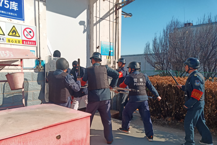 華騰科技園作為全市應急物資、化工產品重要集散地,全國兩會前夕,華騰化工從安全保衛、安全管理、信訪穩定等多個方面進行了全面部署和系統摸排。領導班子成員帶頭到重點部位安全檢查;組織公司中控室人員進行“周界防侵入系統”等專業培訓;對易制爆庫房進行封閉管理并張貼封條,聯合屬地派出所組織開展甲類庫反恐應急演練;認真落實集團信訪維穩、接訴即辦相關工作要求,切實將安全保穩定工作落實落地。